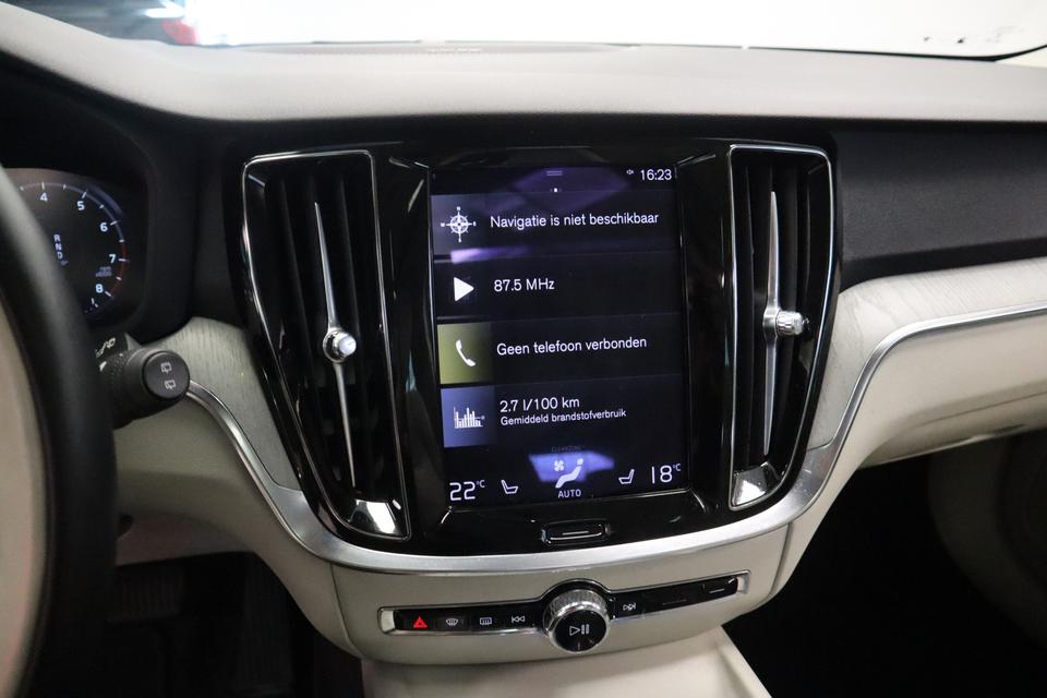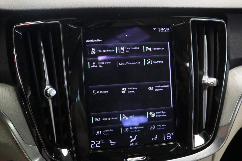 Met de nieuwste technologieën aan boord is deze Volvo in staat om zelf te reageren op potentieel gevaarlijke situaties op de weg. Verkeersborddetectie herkent tijdelijke en permanente verkeersborden langs en boven de weg. Deze Volvo V60 is ook behulpzaam als het gaat om een rechte koers. Het Lane-keeping systeem signaleert en corrigeert als u onbedoeld de rijstrooklijnen dreigt te overschrijden. Hoe goed u ook oplet in het verkeer, de dode hoek blijft een risico. Gelukkig is deze Volvo V60 voorzien van actieve dodehoekdetectie. Ook helpen het forward collision warning system, hill hold functie, brake assist, vermoeidheidsherkenning en bandenspanningcontrolesysteem, uw rit tot een veilige rit te maken.
